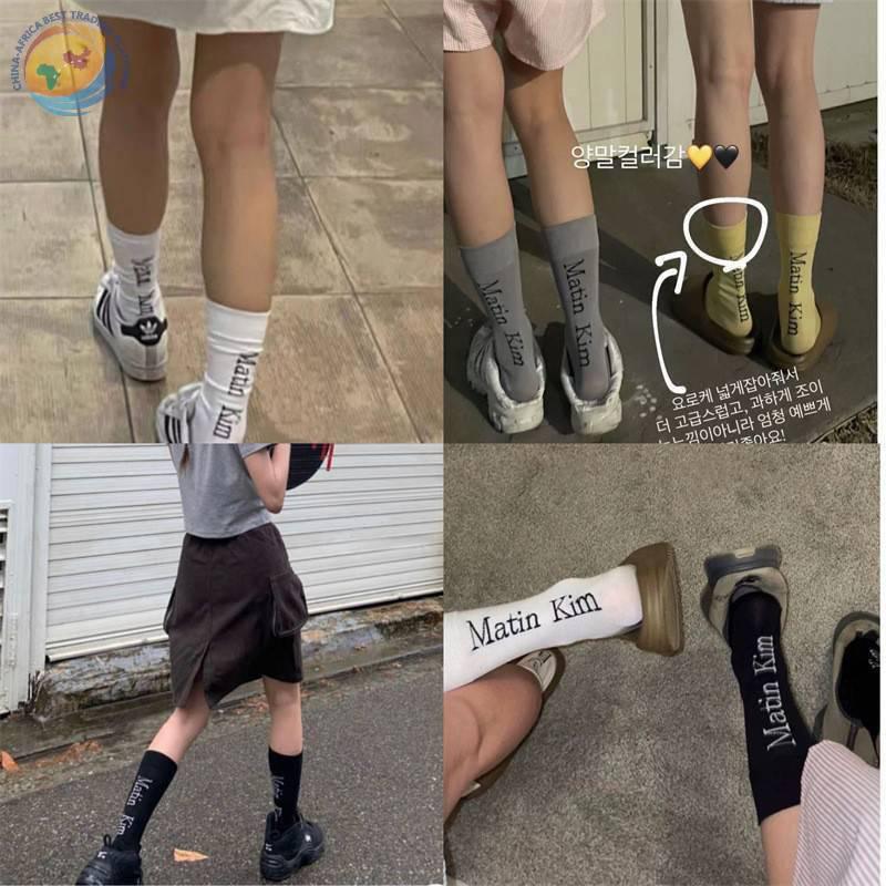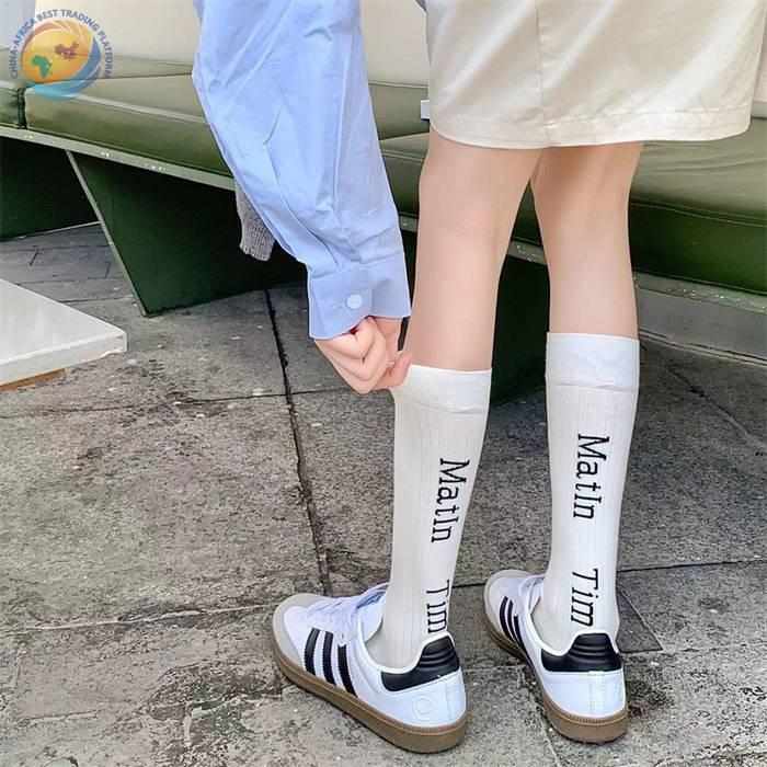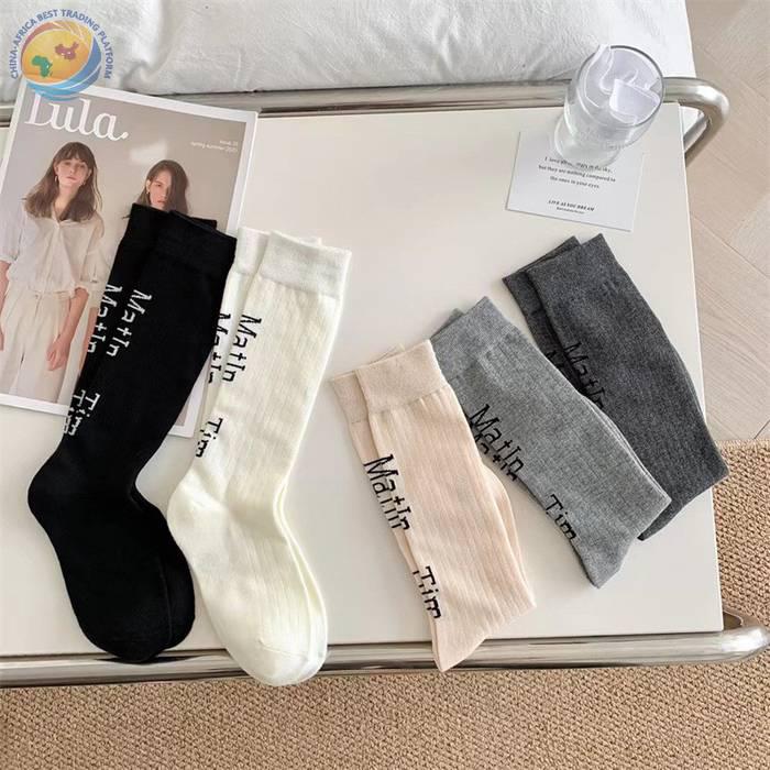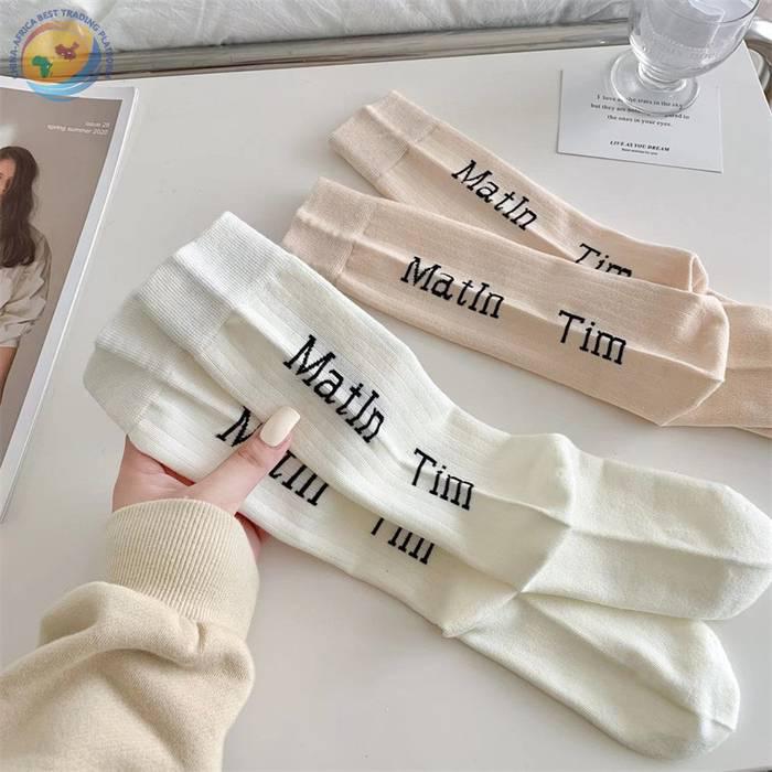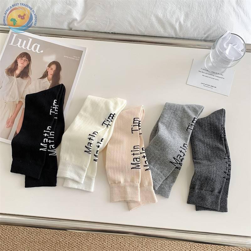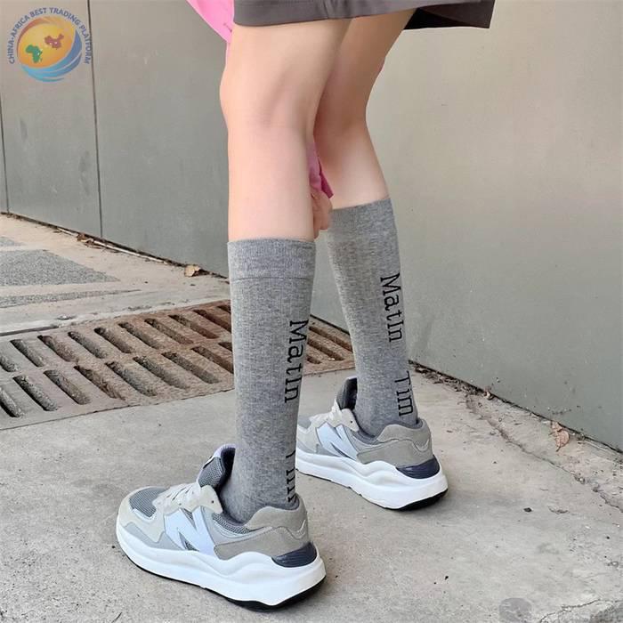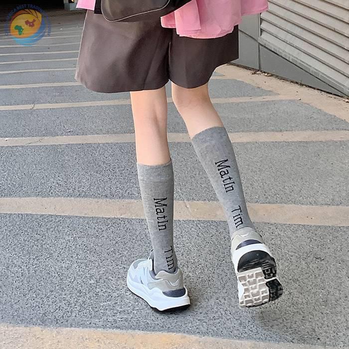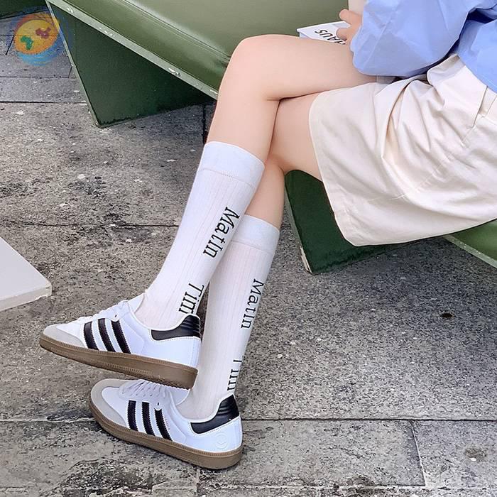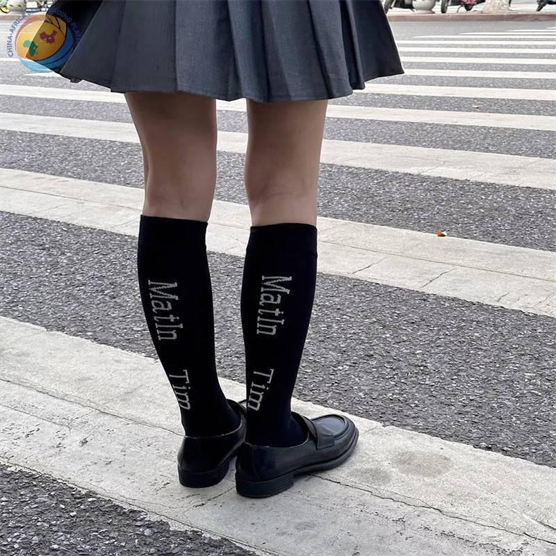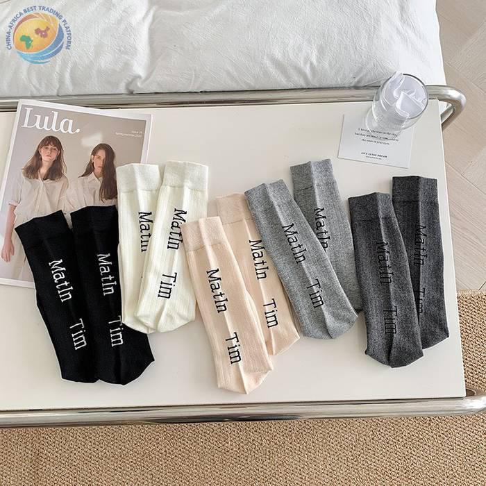 日系简约英文字母纯棉长筒小腿袜潮流纯色女袜