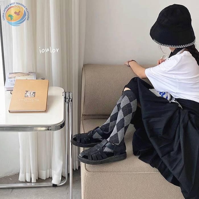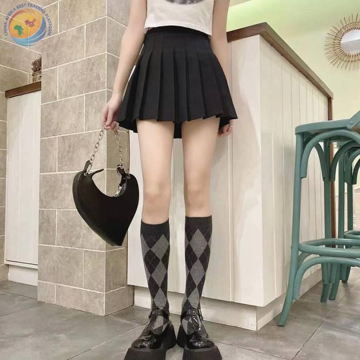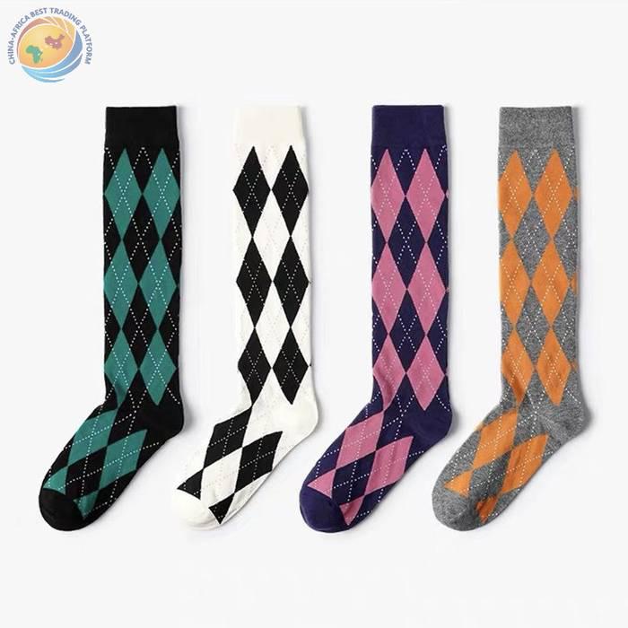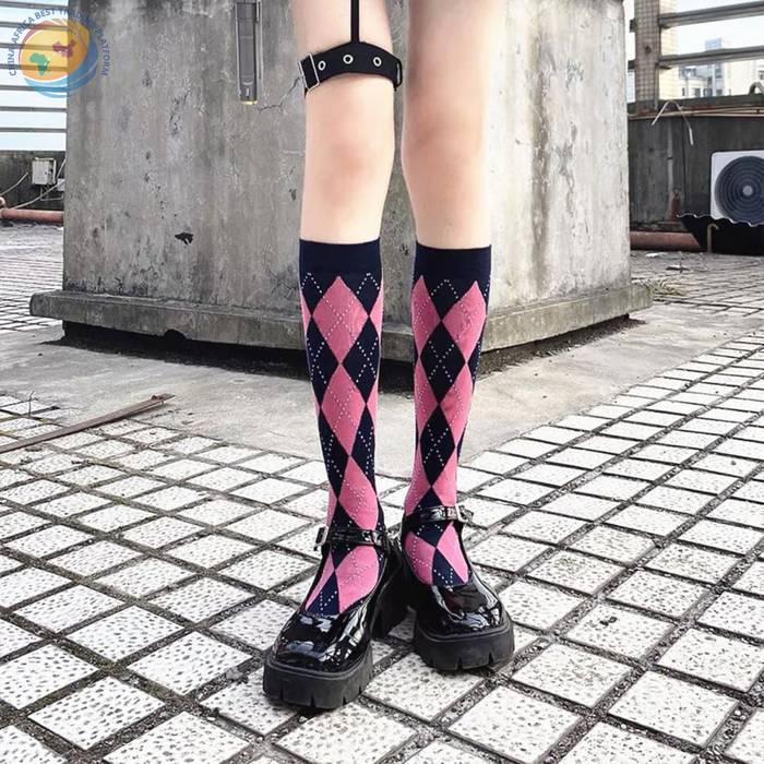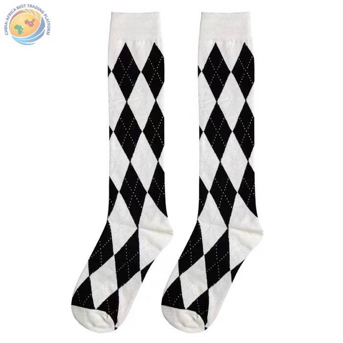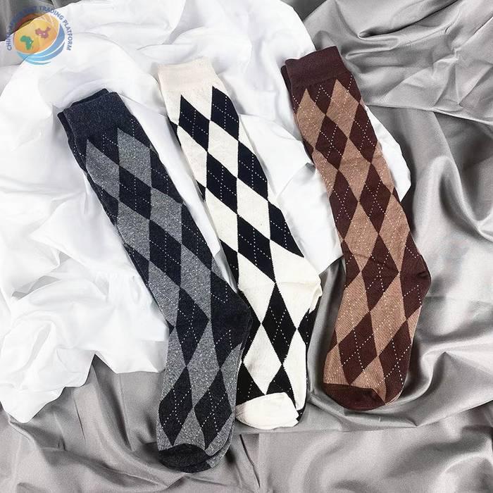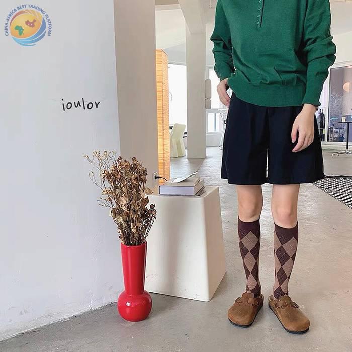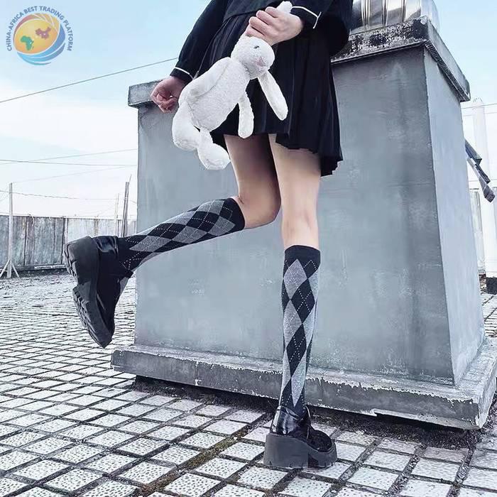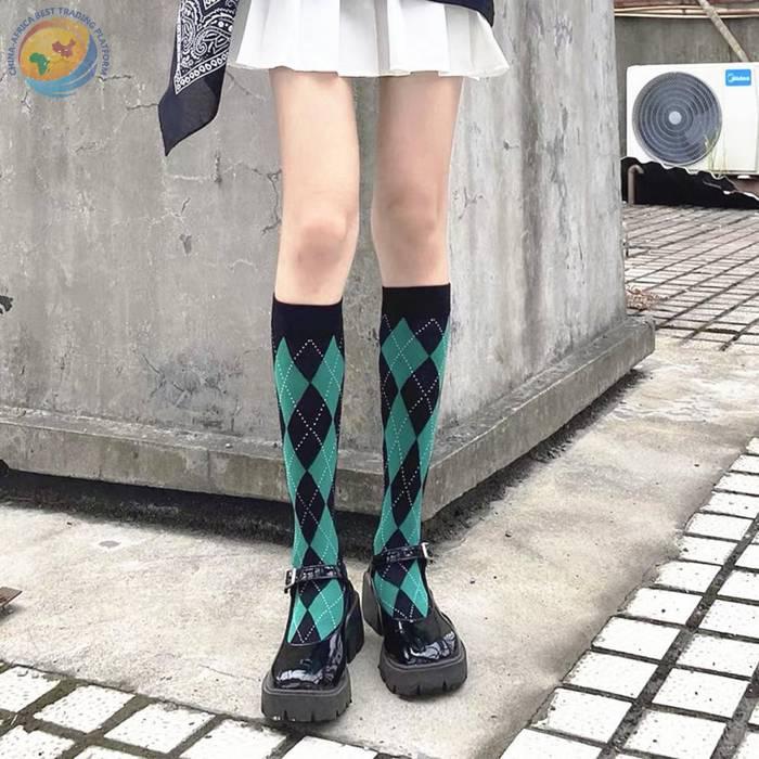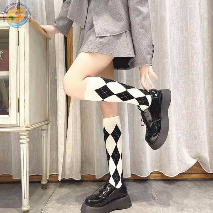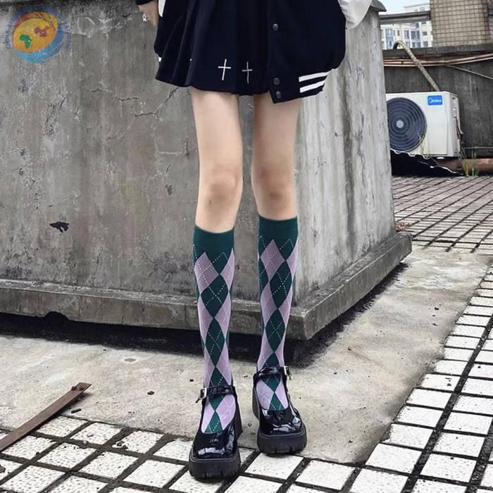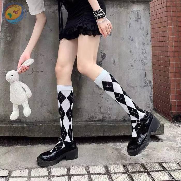 Lolita新款菱形格小腿袜秋冬甜美日系高筒棉袜