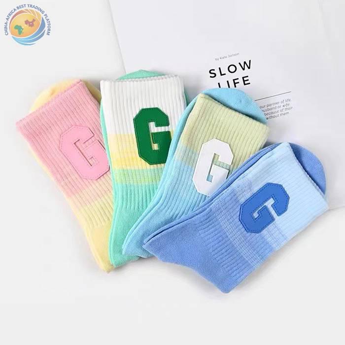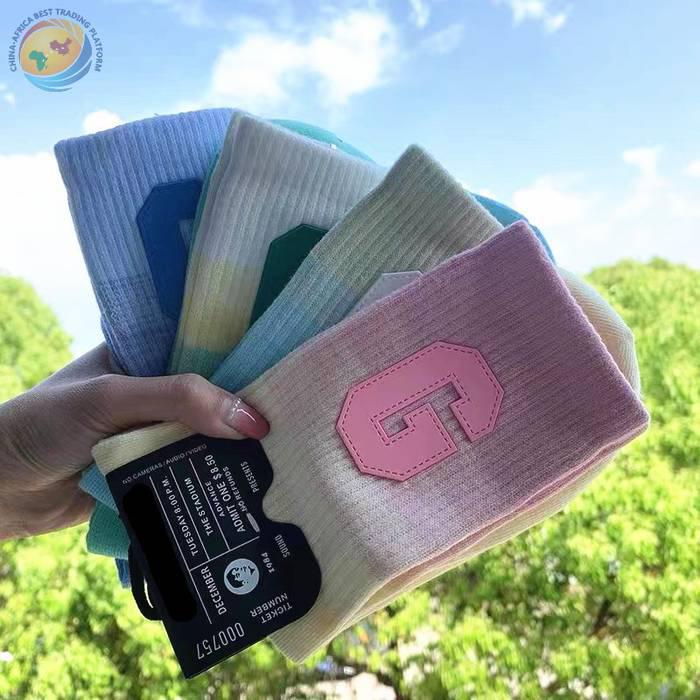 Fashion gradient G letter sports socks for men and women wear tie-dye mid-tube socks for spring and summer