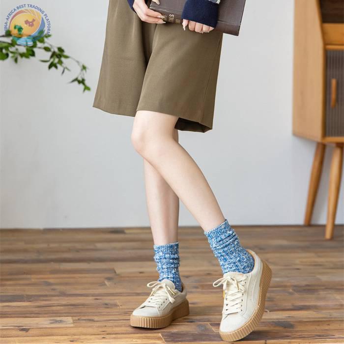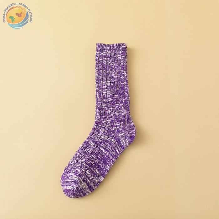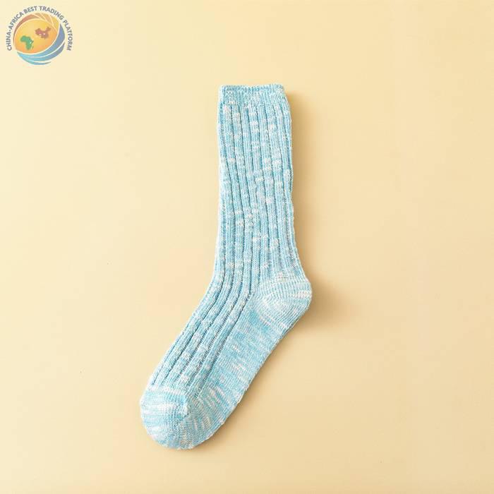原创雪花彩色纯色粗线秋冬加厚中长筒袜子