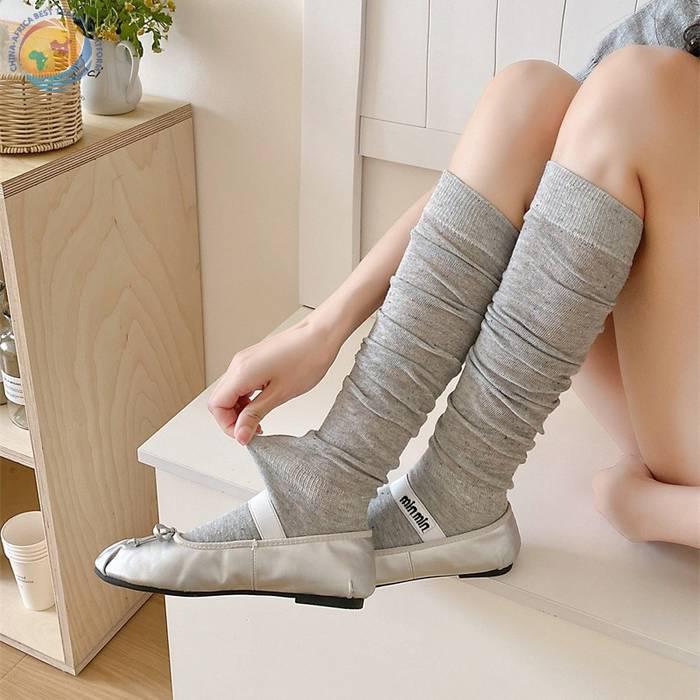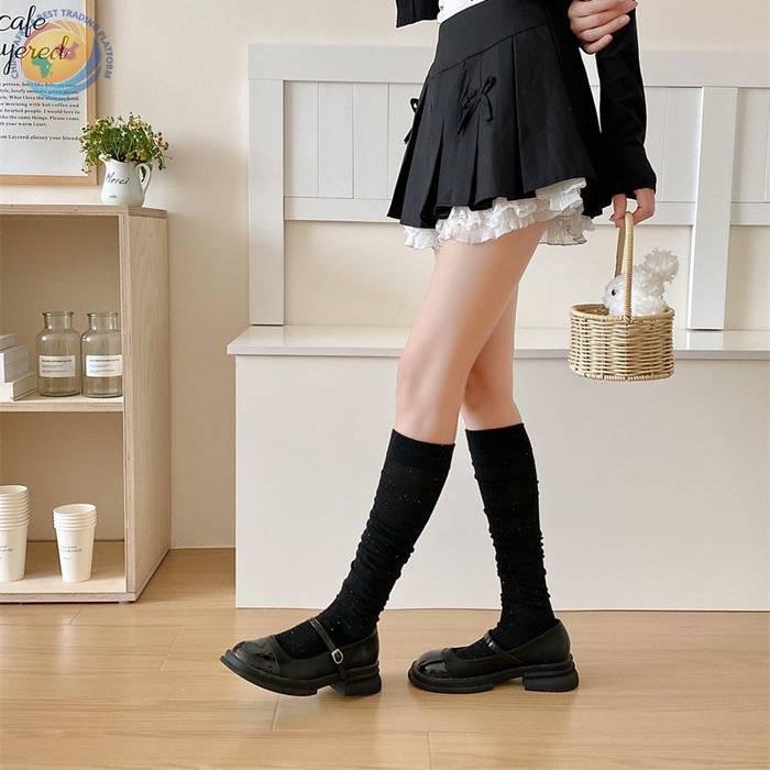 春夏新款ins过膝袜纯色miu风jk袜子点子纱小腿袜