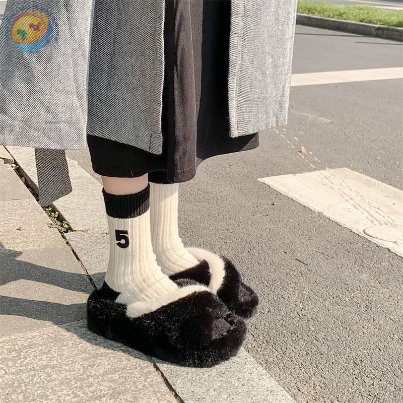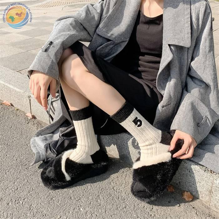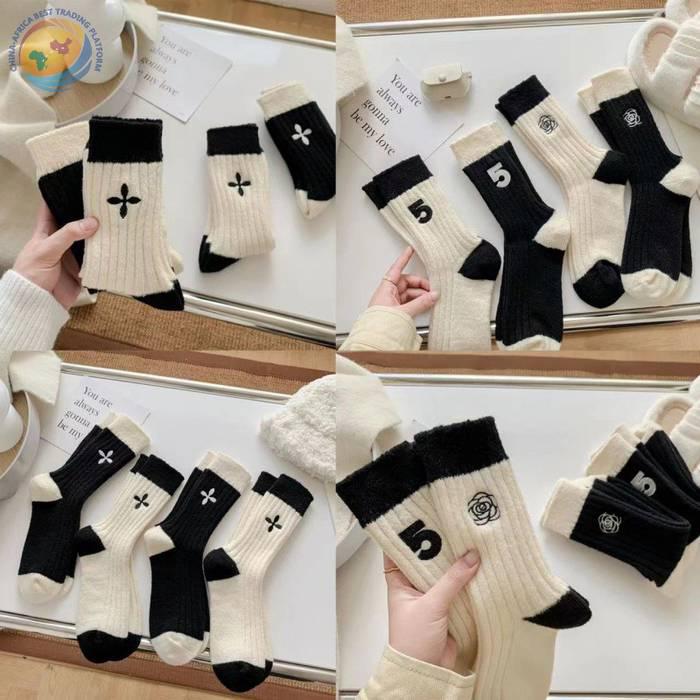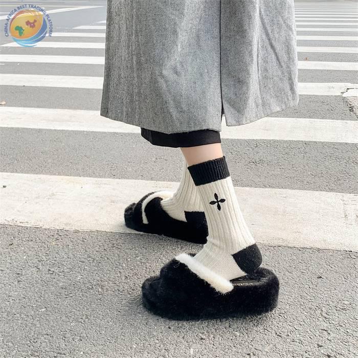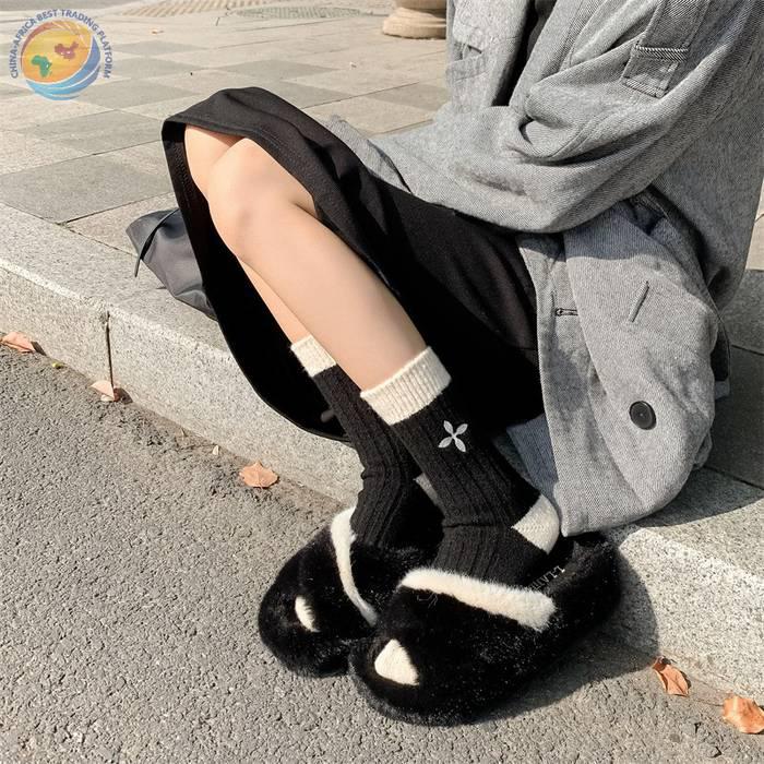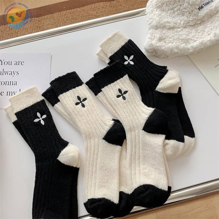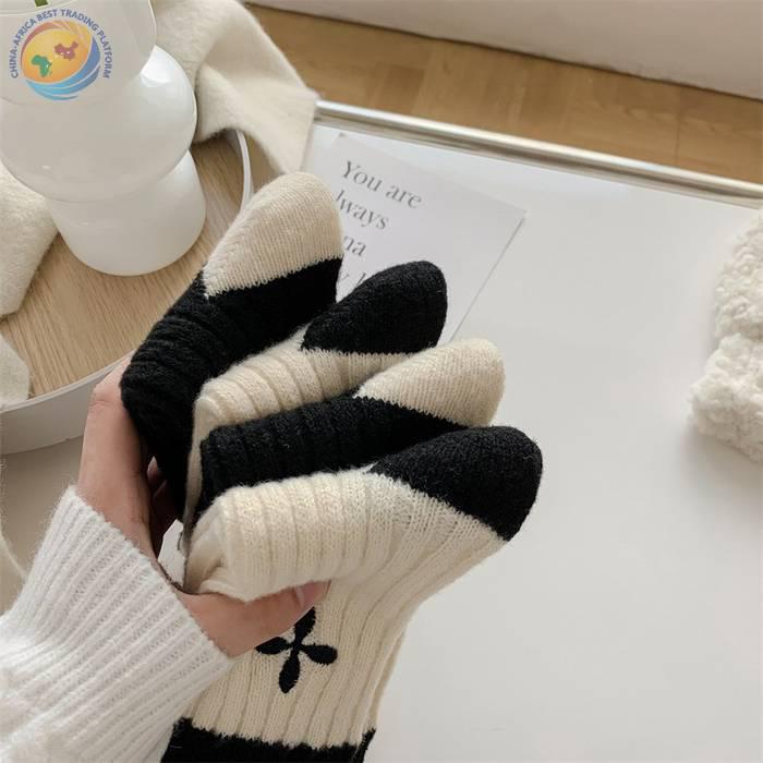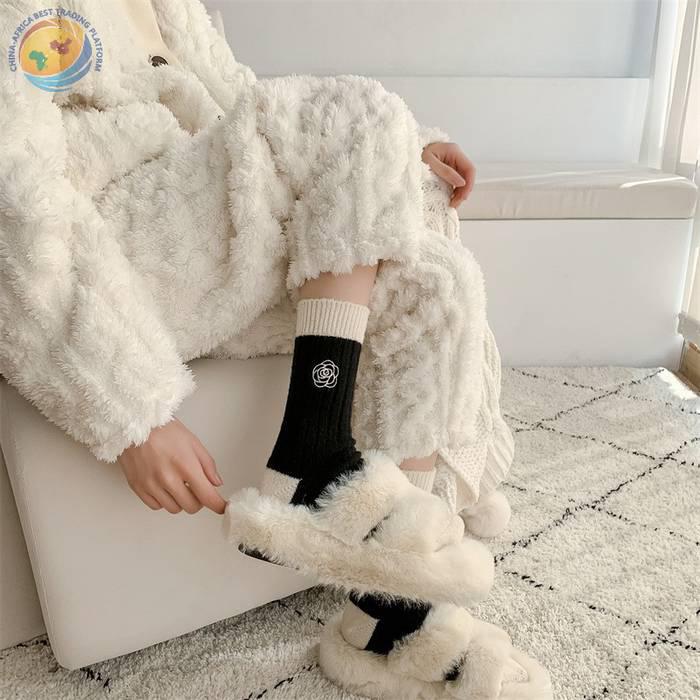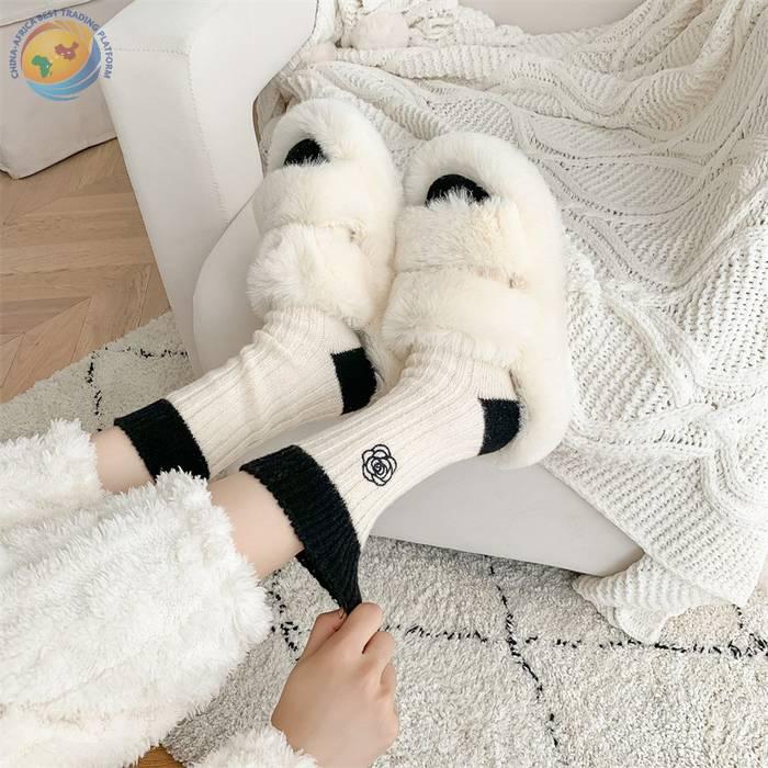 日系十字架玫瑰花刺绣羊毛袜子女中筒袜