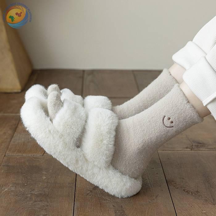 日系澳绒笑脸刺绣中筒袜美拉德纯色月子袜