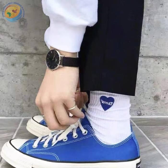 日本潮牌what爱心刺绣双色潮流男女纯棉中筒袜