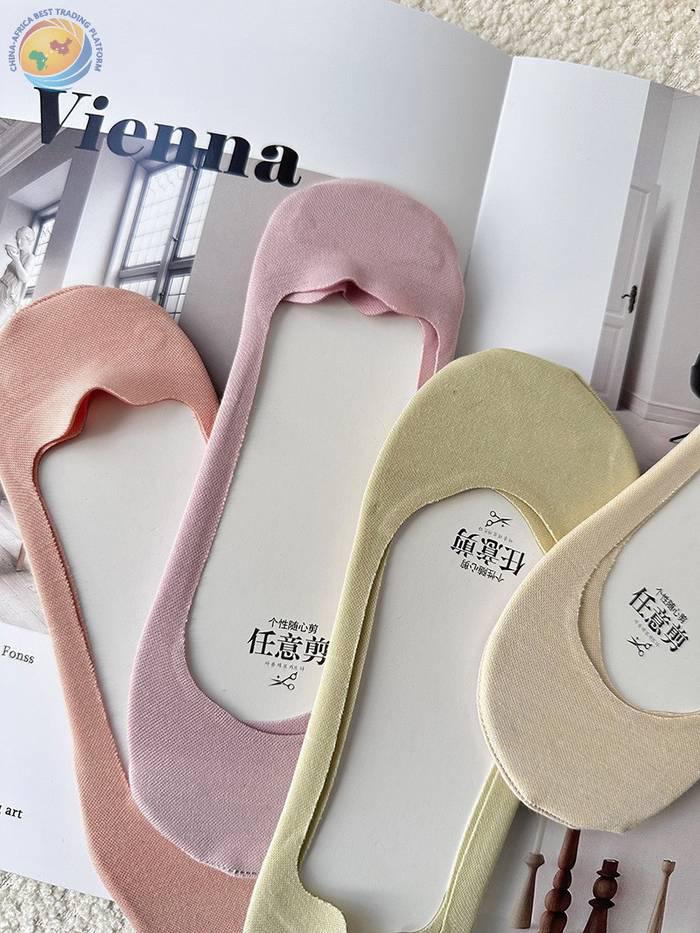Women\'s ice silk boat socks summer thin cotton bottom low top shallow mouth invisible socks