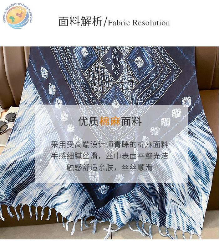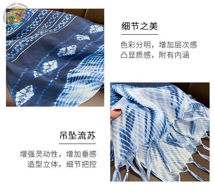 Spring and autumn warm windproof blue batik long cotton linen silk scarf