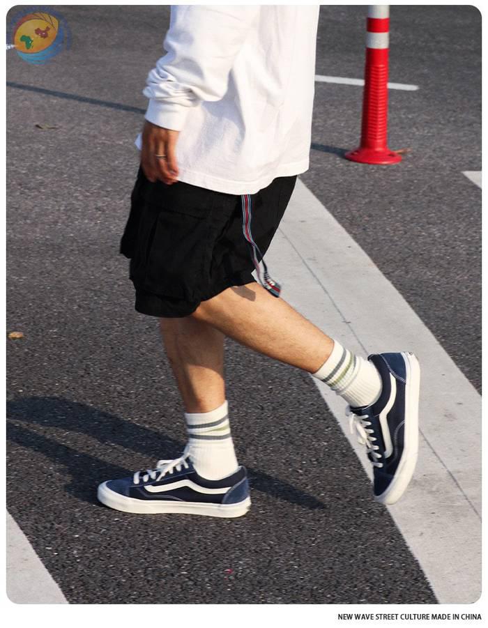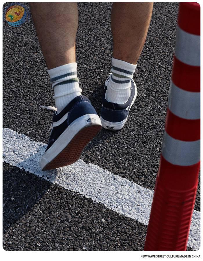 女中筒袜潮三条杠经典条纹韩版长袜男