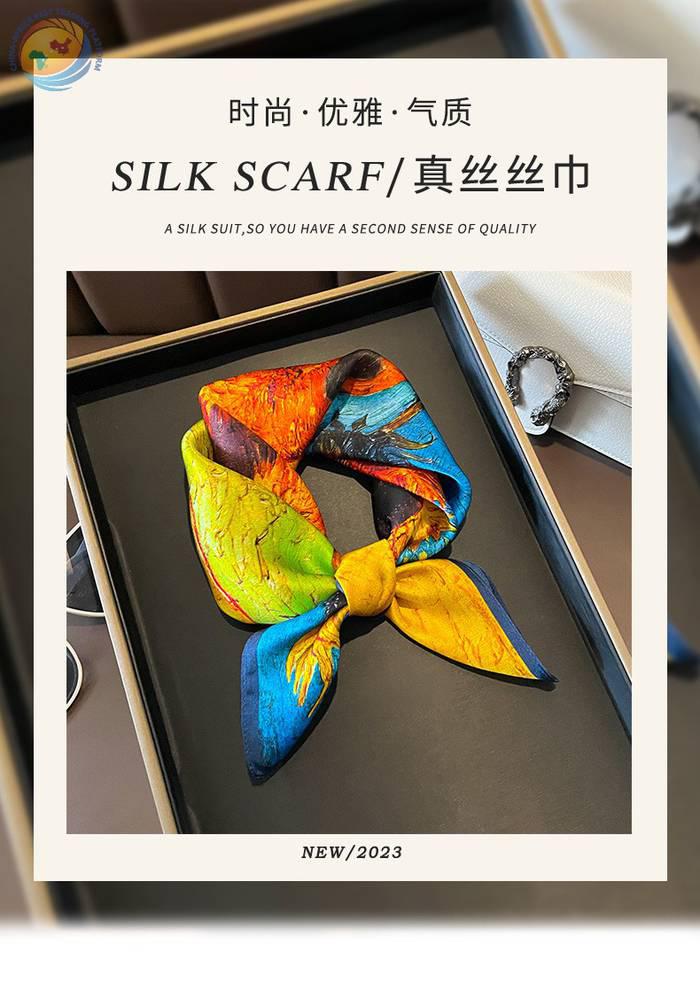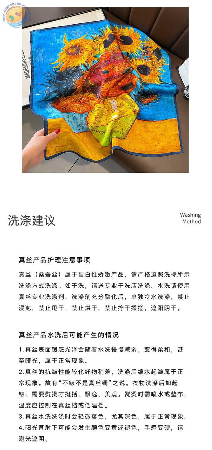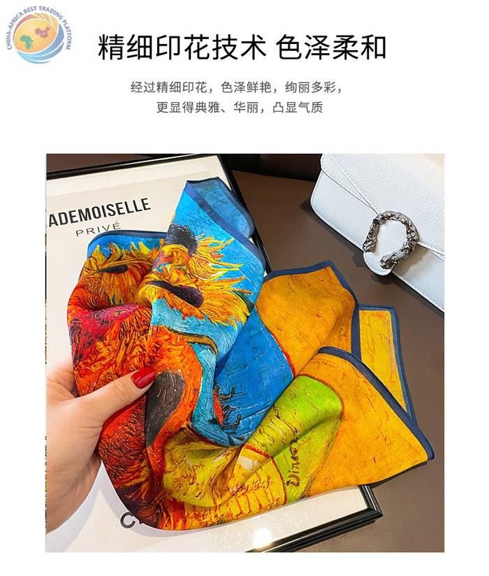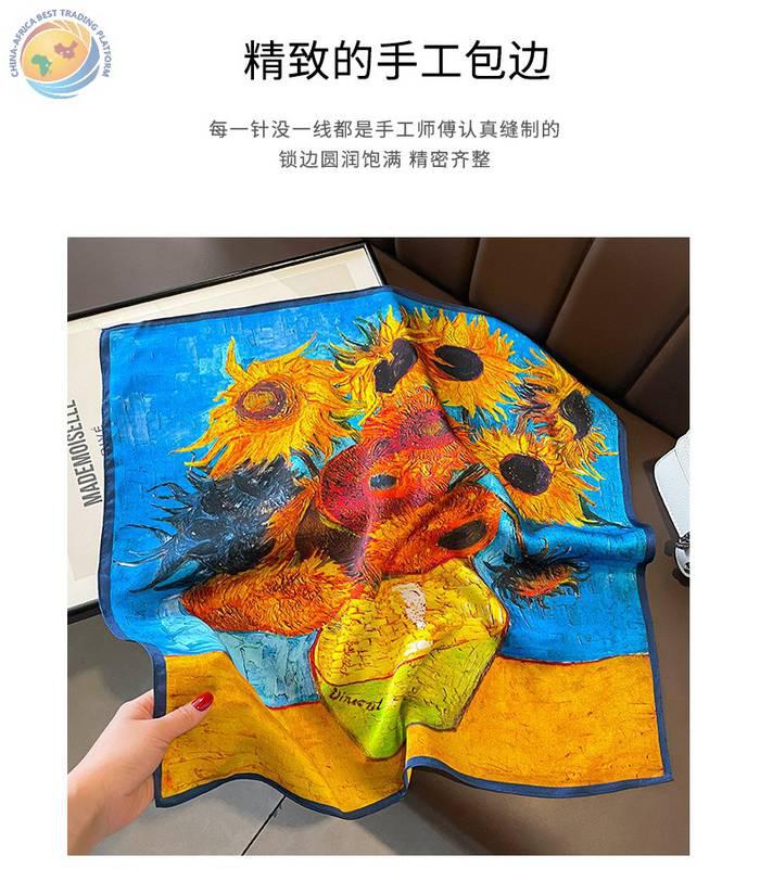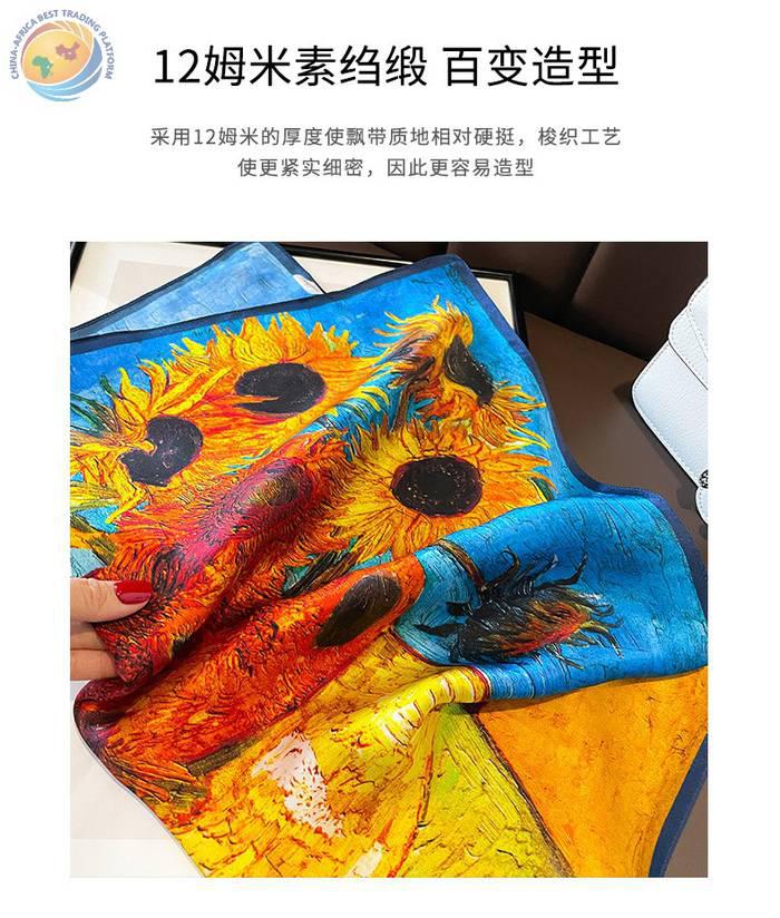 Painting style small square towel Van Gogh sunflower retro silk matching printed square towel