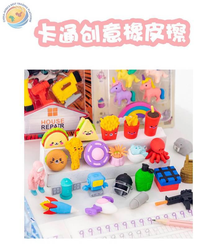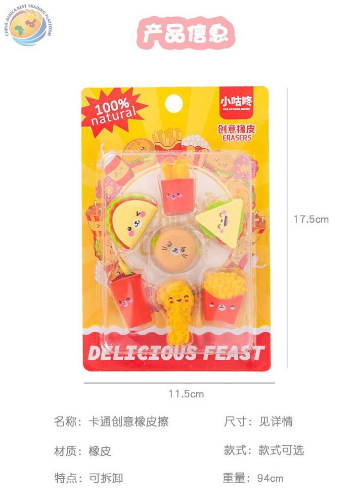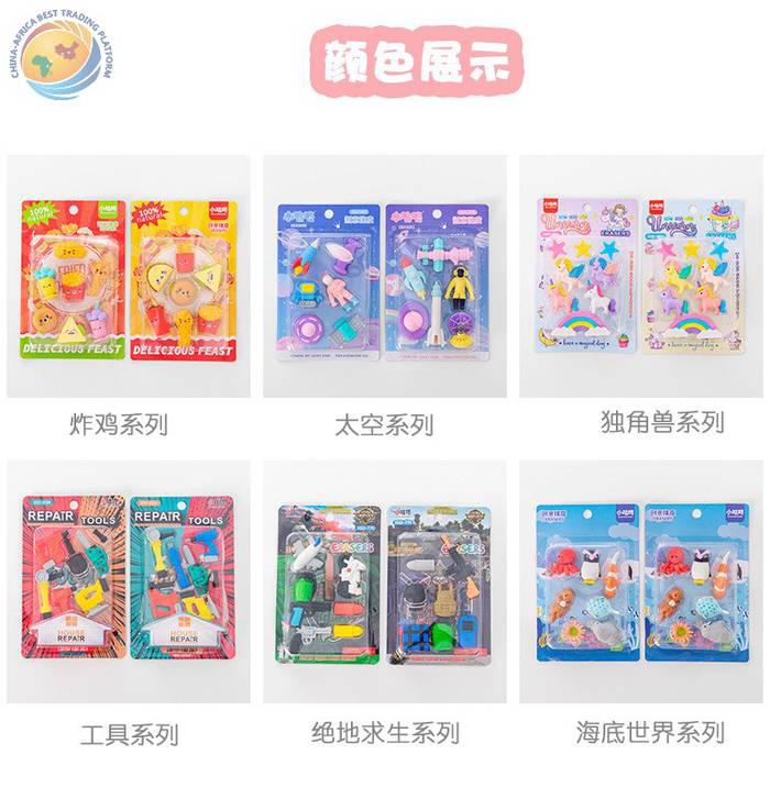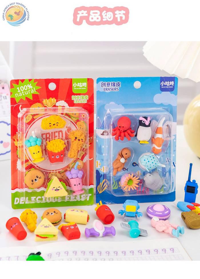 Creative cartoon animal food tool eraser set Student stationery prizes